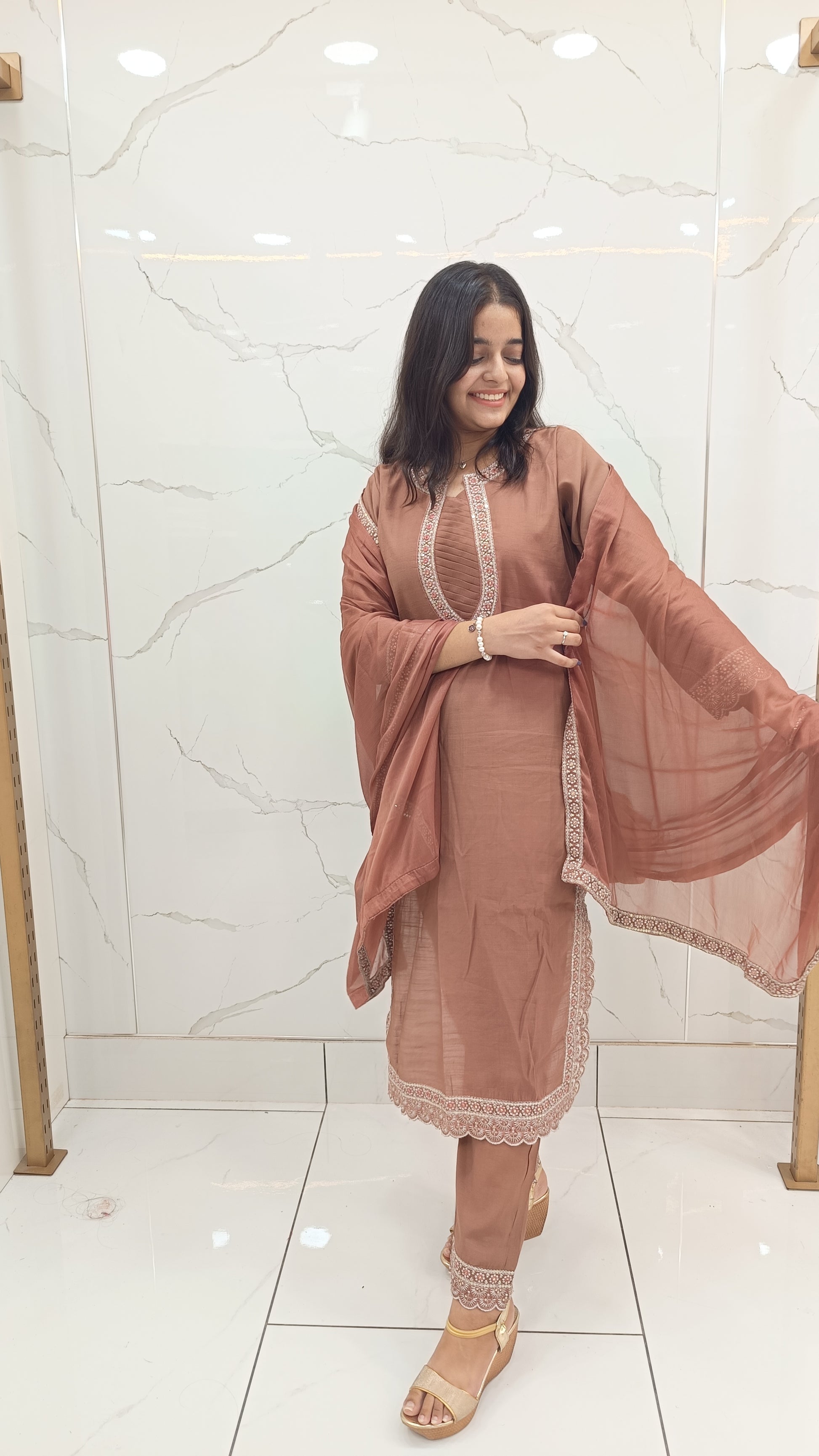 This red Muslin Anarkali suit set with dupatta is a versatile choice – comfortable, stylish, and perfect for making a graceful statement at any occasion.