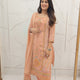 This peach crepe embroidered suit set for women is a versatile choice, balancing tradition and style. A must-have ethnic outfit for your wardrobe.